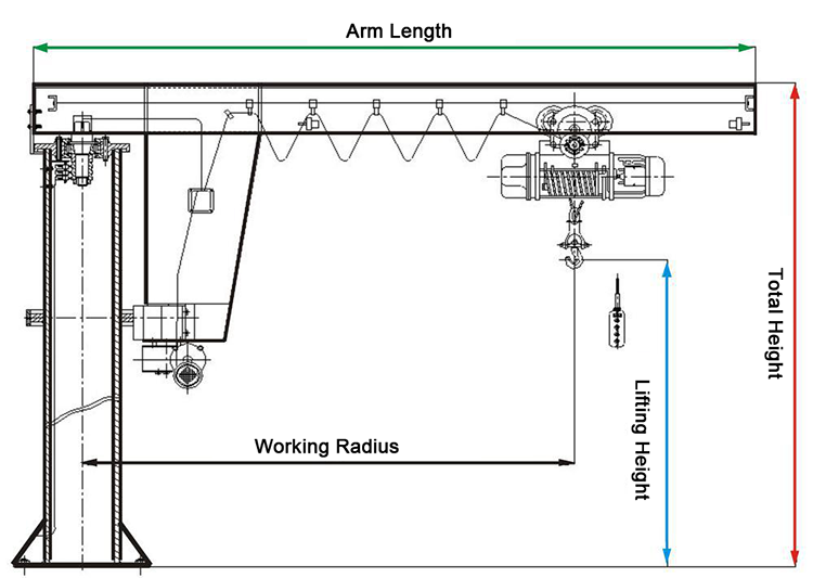 5.Free standing jib crane have a load capacity from 0.5t to 5t.